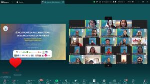 París, 5 de diciembre de 2025 — A medida que los sistemas educativos de todo el mundo enfrentan una creciente fragmentación social, desinformación y paisajes cívicos en transformación, más de cien representantes de gobiernos, escuelas de la Red del Plan de Escuelas Asociadas de la UNESCO (ASPnet), Comisiones Nacionales, organizaciones asociadas, universidades, ONG, medios de comunicación y redes juveniles se reunieron en línea el 5 de diciembre para el evento “Educación para la Paz en Acción: De la Política a la Práctica”.