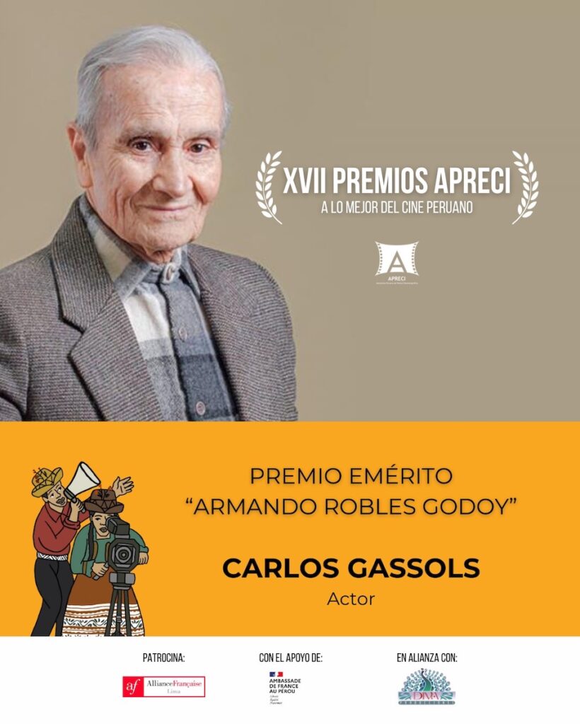 En esta edición, la APRECI otorgará el Premio Emérito “Armando Robles Godoy” al primer actor Carlos Gassols, en reconocimiento a su destacada trayectoria en la cinematografía peruana. Nacido en Lima en 1929, Gassols ha dejado una huella indeleble en el teatro, la televisión y el cine, además de desempeñarse como locutor radial, dirigente sindical y dramaturgo.