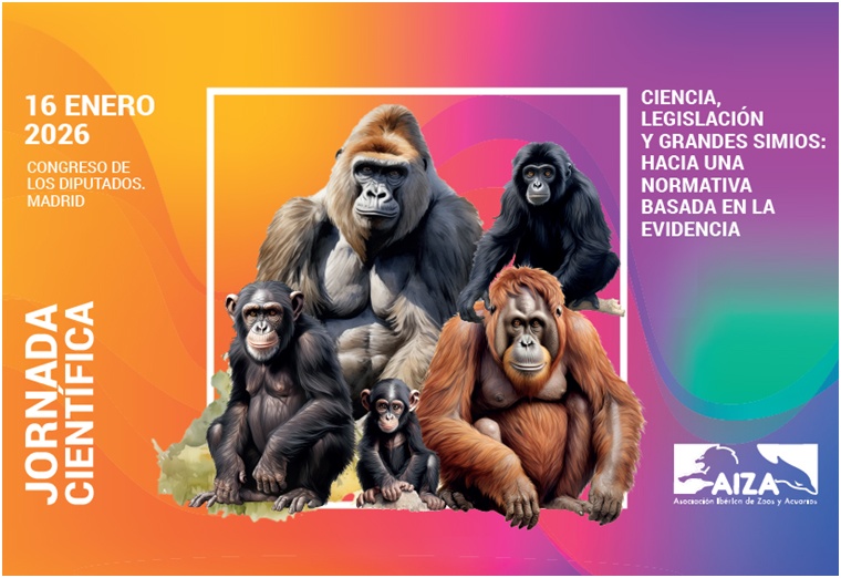 El pasado 16 de enero, y ante representantes y directores de zoos, técnicos del sector y algunos responsables políticos, Pedro Pozas Terrados, Director Ejecutivo del Proyecto Gran Simio, participó como ponente en unas jornadas organizadas por la Asociación Ibérica de Zoos y Acuarios (AIZA) bajo el título “Ciencia, legislación y grandes simios: hacia una normativa basada en la evidencia”.