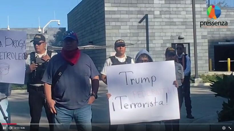 Manifestación en Guatemala realizada ayer frente a la embajada de EE. UU. en repudio a la invasión a Venezuela por parte del gobierno estadounidense