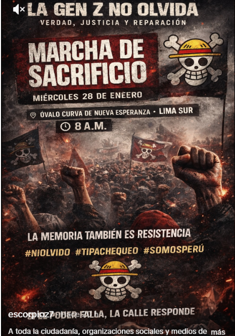 Para brindar total respaldo, se sumarán a la Marcha de Sacrificio la Federación Universitaria de San Marcos (FUSM), la Federación de Estudiantes de la PUCP (FEPUCP), gremios de transportistas, frentes juveniles, colectivos de la Generación Z, autoconvocados y público en general.