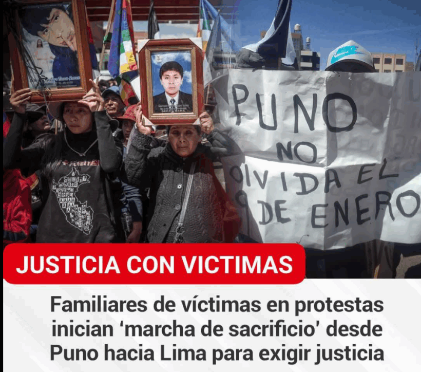 Por su parte el colectivo Ama Sua Llulla Quella respaldó la marcha señalando que: “Somos una juventud y un pueblo consciente de la grave situación que atraviesa nuestro país. Por ello, nos sumamos firmemente a la Marcha de Sacrificio y exigimos justicia para los familiares de nuestros hermanos y hermanas asesinados durante las protestas de los años 2022–2023. El pueblo unido jamás será vencido” dijeron.