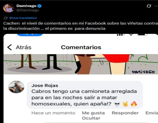 Lo que comenzó como una viñeta contra la discriminación terminó exponiendo una vez más la realidad que atraviesa nuestra convivencia: la facilidad con que el odio encuentra espacio en redes sociales y la dificultad de responder a él desde las instituciones. El episodio ocurrido en la página de Facebook del artista DamiVago no solo plantea un debate legal, sino una pregunta más profunda sobre qué sociedad estamos construyendo cuando la violencia en redes sociales deja de sorprendernos.