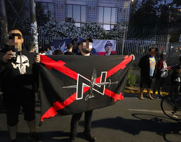 Foto: grupo neonazi “Frente Nacional Criollo” marchando tras la victoria presidencial de José Antonio Kast, Santiago.