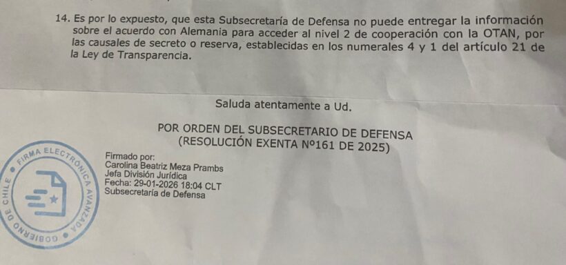Chile tiene una Ley de Transparencia que establece el principio de publicidad de los actos del Estado. Las excepciones deben ser justificadas, proporcionales y fundadas. La invocación genérica del “secreto” en materia de defensa no se puede transformar en un cheque en blanco.
