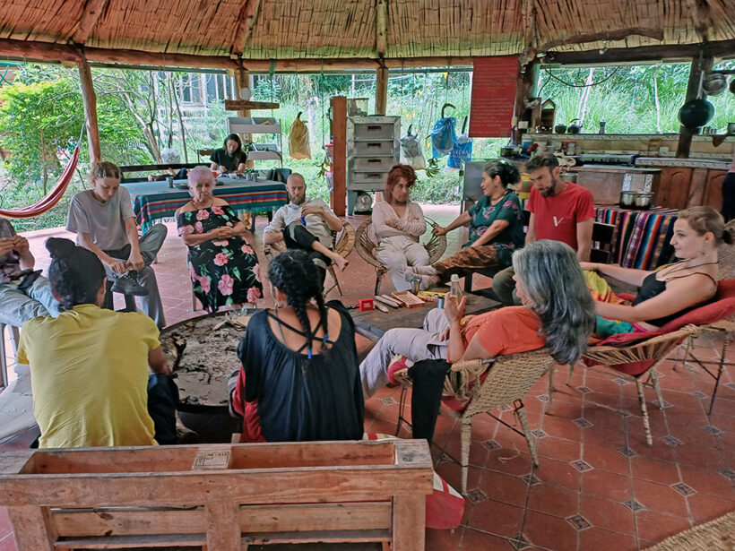 Ecovila Chambalabamba, no Equador, reunião comunitária.