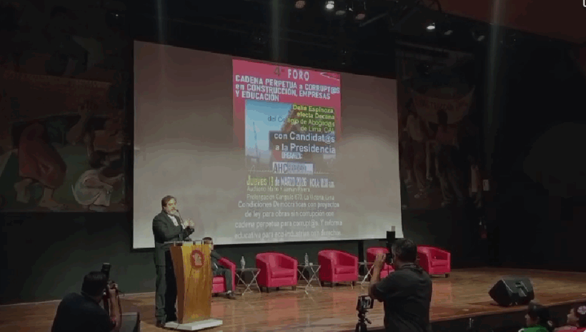 Durante el foro, el jurista Raúl Canelo, impulsor del AHC, cuestionó la concentración de poder en el Congreso y denunció la aprobación de normas que, según afirmó, han debilitado la lucha contra el crimen organizado.