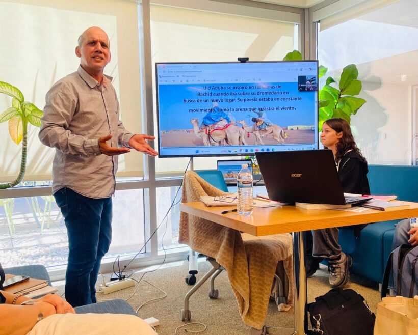 Cuántas lenguas, cuántas palabras en aquel simposio que organizó la profesora Fazia Aitel junto con Bassam Frangiech. Los estudiantes escuchaban atentos cada palabra, los versos viajaban de una lengua a otra, Bassam me invitaba a su clase a hablar en hasanía y castellano, a buscar los versos en los granos de cada duna.
