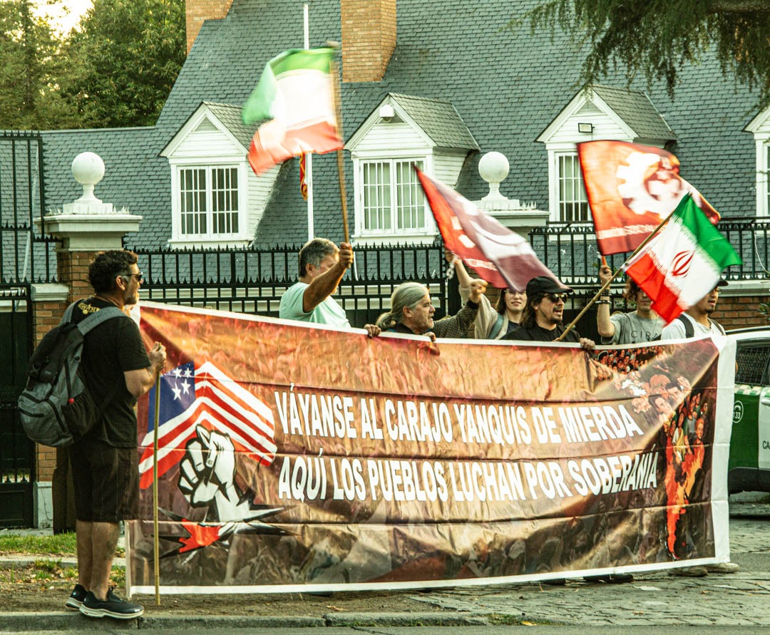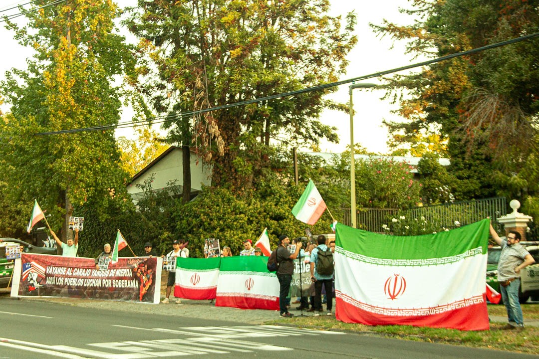 Durante la jornada del jueves 2 de abril, un grupo cercano a 50 manifestantes se reunió frente a la embajada de Irán en Santiago, específicamente en la comuna de Las Condes, para llevar a cabo una protesta enmarcada en una convocatoria internacional antifascista.