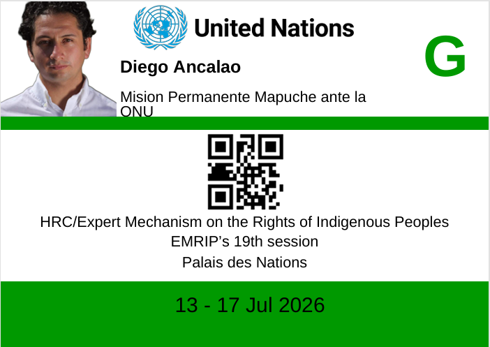 Mientras en Chile el aparato judicial ha pretendido criminalizar el liderazgo de Ancalao mediante procesos denunciados como montajes inspirados en la Operación Huracán, condenada por conspiración estatal contra líderes mapuche. La ONU lo ha validado categóricamente en su investidura plena de Ministro Consejero de la Misión Permanente Mapuche, interlocutor legítimo en Ginebra. No solo desmantela la fobia judicial interna, sino que este reconocimiento lo sitúa no como imputado bajo persecución política, sino como un diplomático de una nación preexistente, sujeto de derecho internacional y protegido por las garantías universales de los tratados de derechos humanos y la jurisprudencia vinculante de la comunidad internacional.