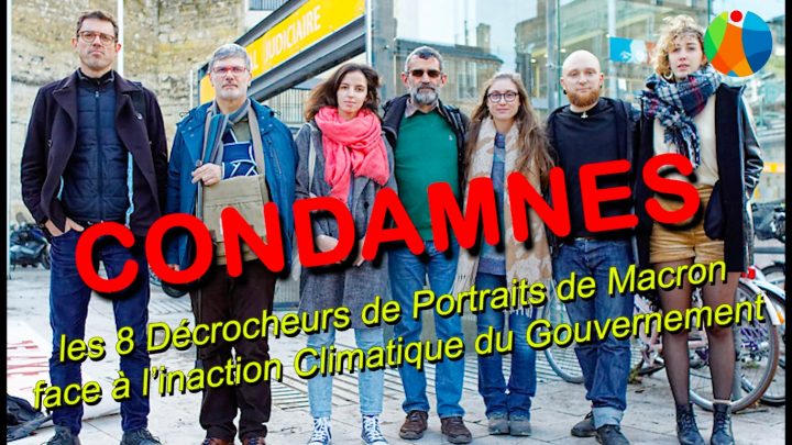 Los 8 activistas de AVN-COP21 Burdeos fueron declarados culpables de requisar los retratos del Presidente Macron, pero con suspensión de la sentencia si los retratos fueran devueltos el 14 de febrero de 2020.