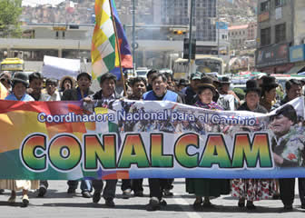 El secretario ejecutivo de la Confederación Sindical Única de Trabajadores Campesinos de Bolivia, Damian Condori, en conferencia de prensa dictada en instalaciones de la CIDOB en Santa Cruz, dijo que ‘ante este intento de desestabilización, este intento de golpe de Estado, por eso convocamos, desde Santa Cruz, desde el oriente boliviano, como Pacto de Unidad, como representantes del Conalcam el 1 de mayo a una gran concentración masiva, en la ciudad de La Paz para ratificar la unidad del país’.