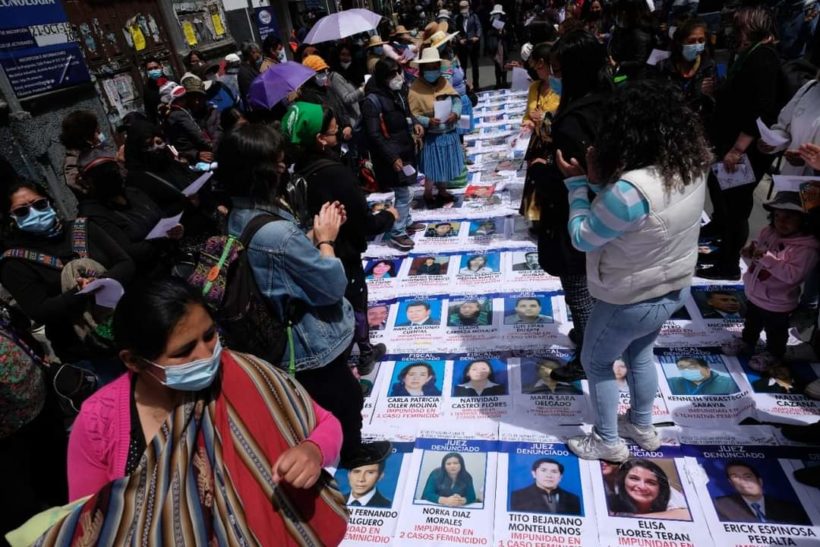 El lunes 7 y el martes 8 de Marzo se realizó una histórica marcha de las mujeres bolivianas exigiendo justicia, en un contexto de liberación masiva de femicidas y violadores con sentencia, así como de un aumento de la violencia contra la mujer. La marcha se inició en el faro Murillo hasta la Plaza San Francisco de La Paz. Fue encabezada por las víctimas de violencia de género que alzaban las fotos de los jueces y fiscales responsables de la liberación masiva de femicidas y violadores en el país. Adelante estuvo la foto del senador Hilarión Mamani del MAS-IPSP denunciado por violación recientemente y que fue suspendido de su cargo, pero aún no ha sido expulsado del partido ni del parlamento.