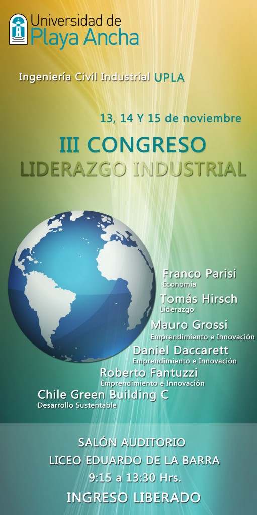 Con la participación de diversas personalidades nacionales tendrá lugar en Valparaíso el 13, 14 y 15 de noviembre próximo el Seminario «Emprendimiento e Innovación para Valparaíso», organizado por CAIN UPLA y patrocinado por la Facultad de Ingeniería UPLA,