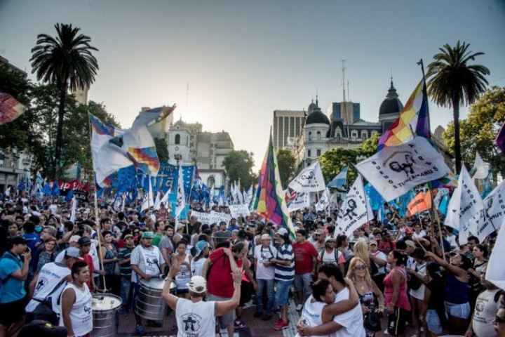 El ánimo de la gente en la plaza es festivo pero sin llegar una exaltación desbordante. Cantan: “Che gorila, che gorila/ no te lo decimos más/ si la tocan a Milagro/ qué quilombo se va armar”. Comparten mates, bailotean al ritmo de la percusión, ríen y discuten. Discuten sin pelearse, sin chicanas, sin gritos.