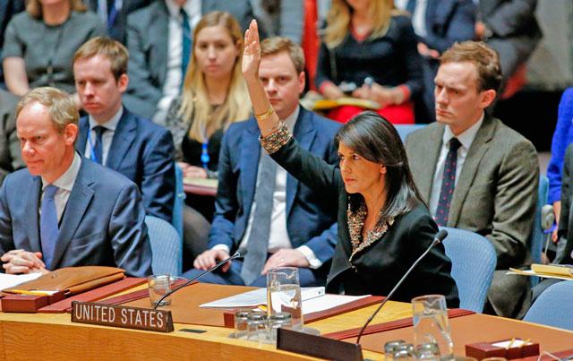 Foto extraída de nota de prensa de The Jordan Times titulada «US vetoes UN call for withdrawal of Trump Jerusalem decision»