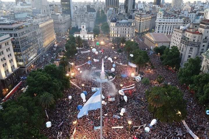 Ya desde los primeros minutos del día arrancaron los cantos y festejos en la Plaza de Mayo, a las 0 horas del 10 de diciembre una muchedumbre en cuenta regresiva recibió el nuevo día en que se terminaba el mandato de un nefasto e inhumano Macri. Comenzaba así un nuevo ciclo político pero también social y cultural en este país que hace del poder de la movilización política masiva una marca propia distintiva, reconocida internacionalmente.