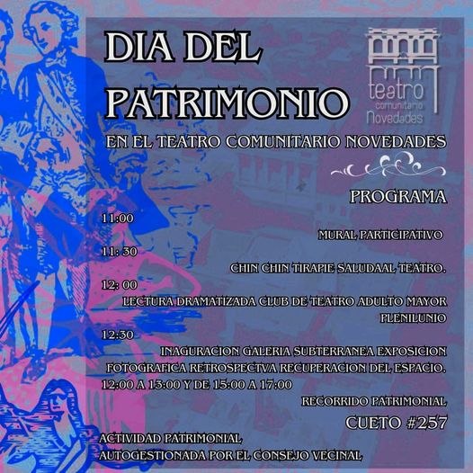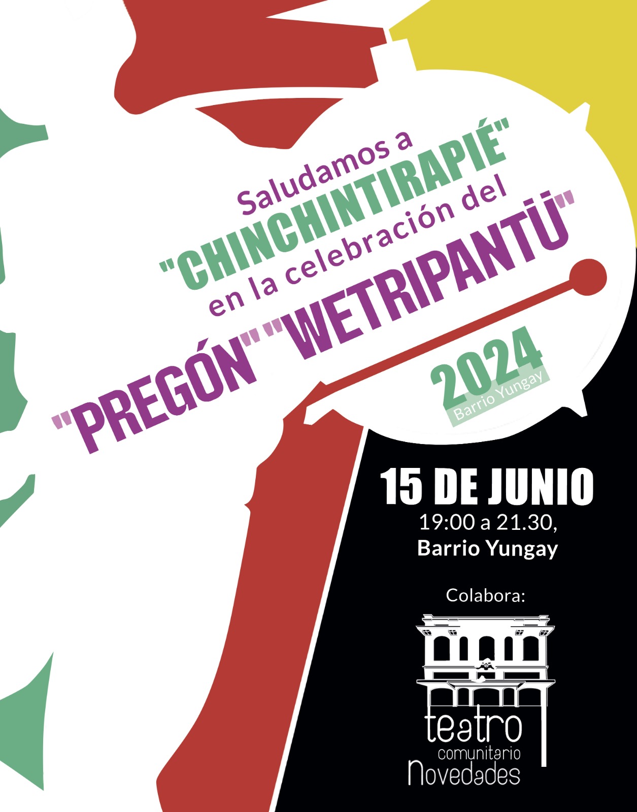 Este sábado 15, a partir de las 19 pm, partirá el Pregón Wetxipantrü de la escuela carnavalera ChinChinTirapié a beneficio de las artistas del canto y el teatro Lorenza Aillapán y María Cañumir, en el Teatro Comunitario Novedades. Vengan en patota…