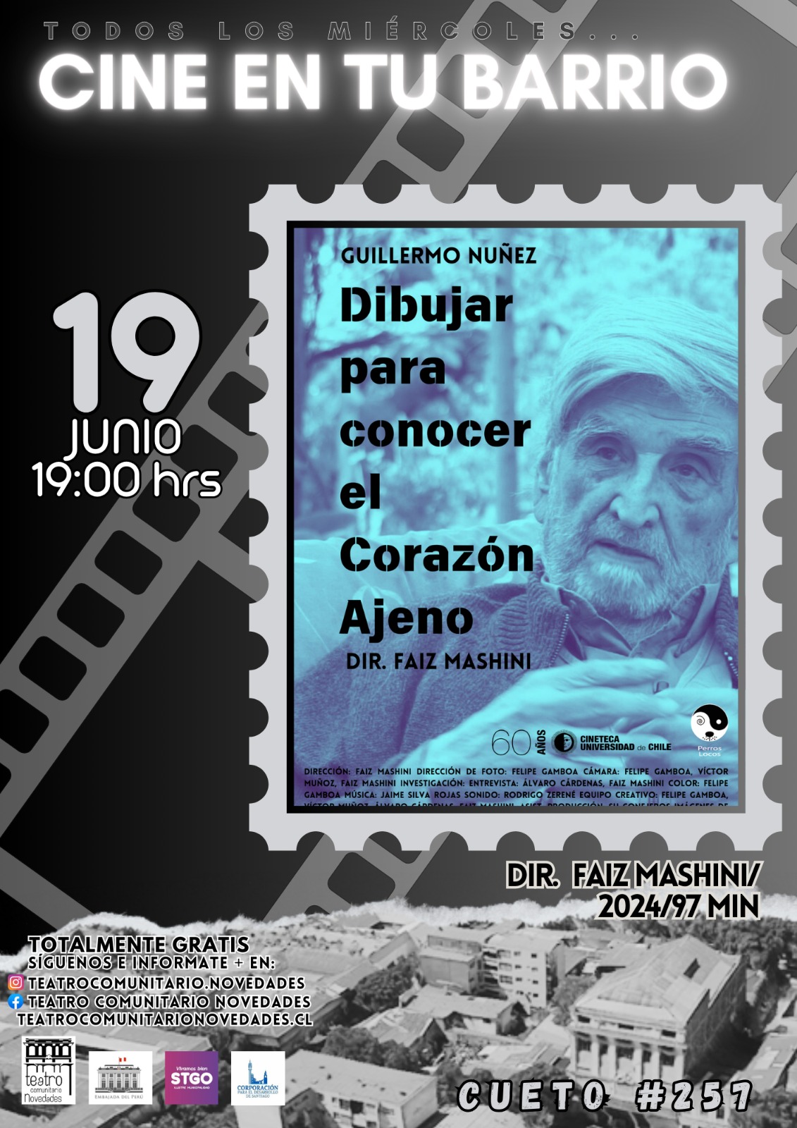 El Teatro Comunitario Novedades (Cueto 257, barrio Yungay) estrenará gratuitamente este 19 de junio a las 19 hrs el documental «Guillermo Núñez. Dibujar para conocer el corazón ajeno». El documental ofrece una mirada íntima a la vida y obra de…