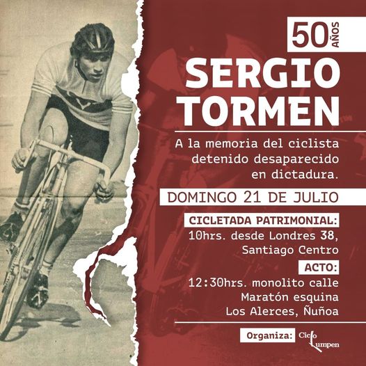 Homenaje al ciclista chileno Sergio Tormen a 50 años de su detención y desaparición
