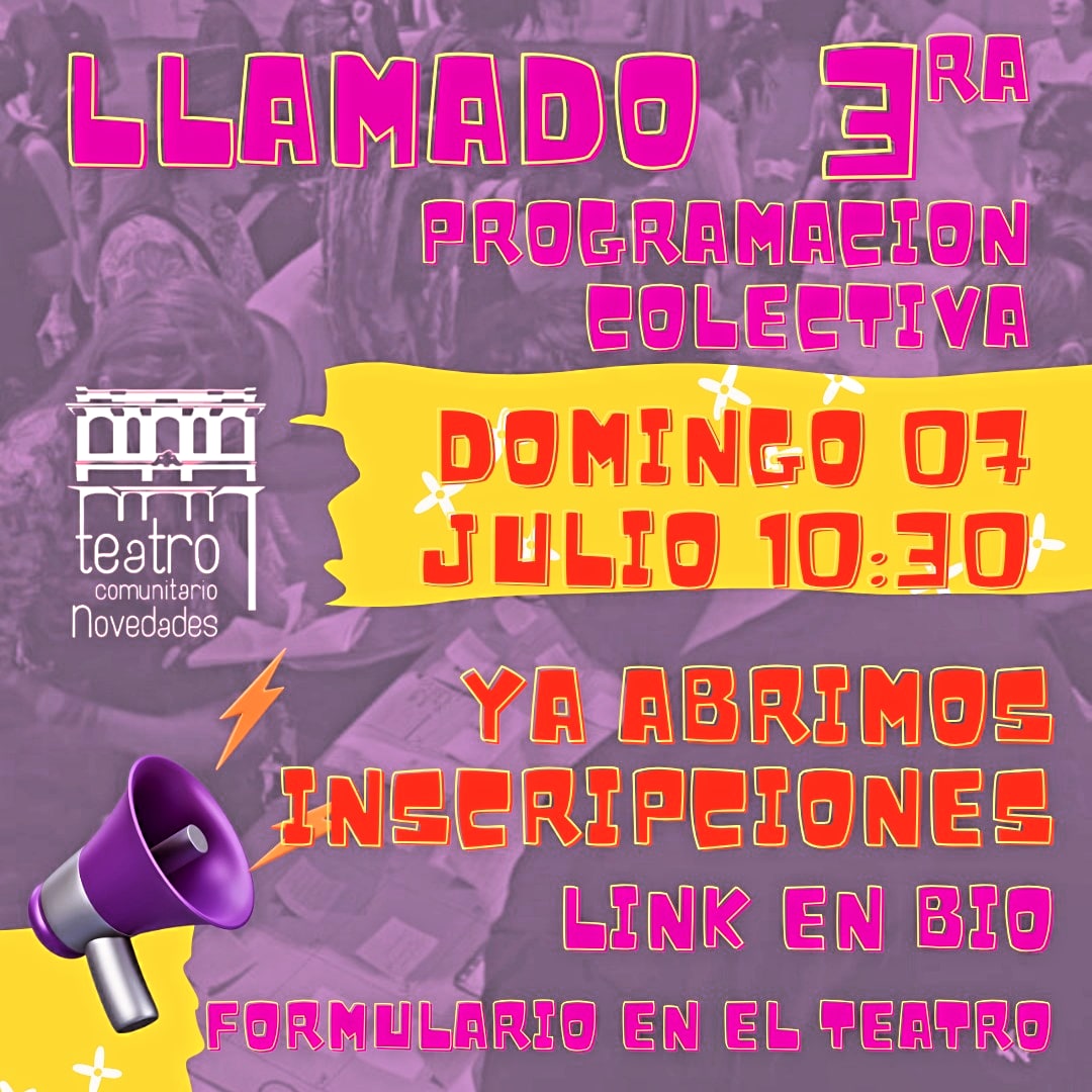 por Carla Trenfo Salvo Este domingo 7 de julio a las 10:30 horas nuevamente el Teatro Comunitario Novedades se prepara para recibir alrededor de cien personas, las cuales serán parte de un proceso comunitario de programación colectiva. Las personas que…