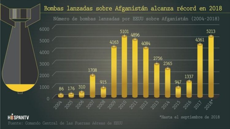 Bombas lanzadas sobre Afganistán alcanza récord en 2018