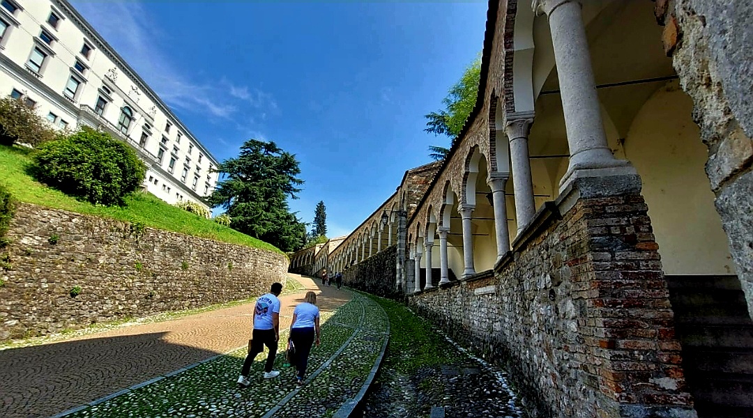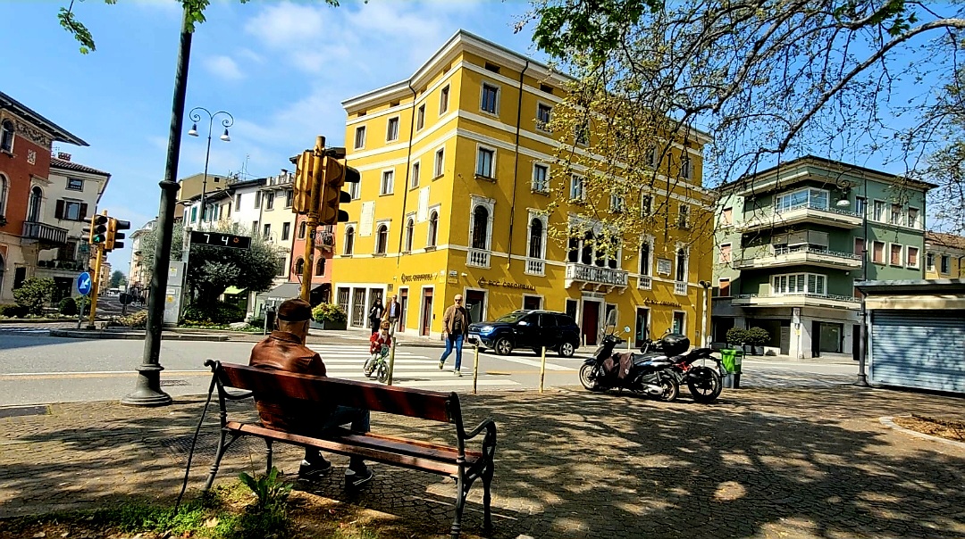 POEMA     Mediodía en Udine; pequeño parque, iluminado por los rayos de Apolo, llegando al magnífico Zenit, en un marco de cielo adornado  de blancas nubes y un trozo de  irrepetible cotidianeidad.   Mediodía en Udine; acuarela de edades…