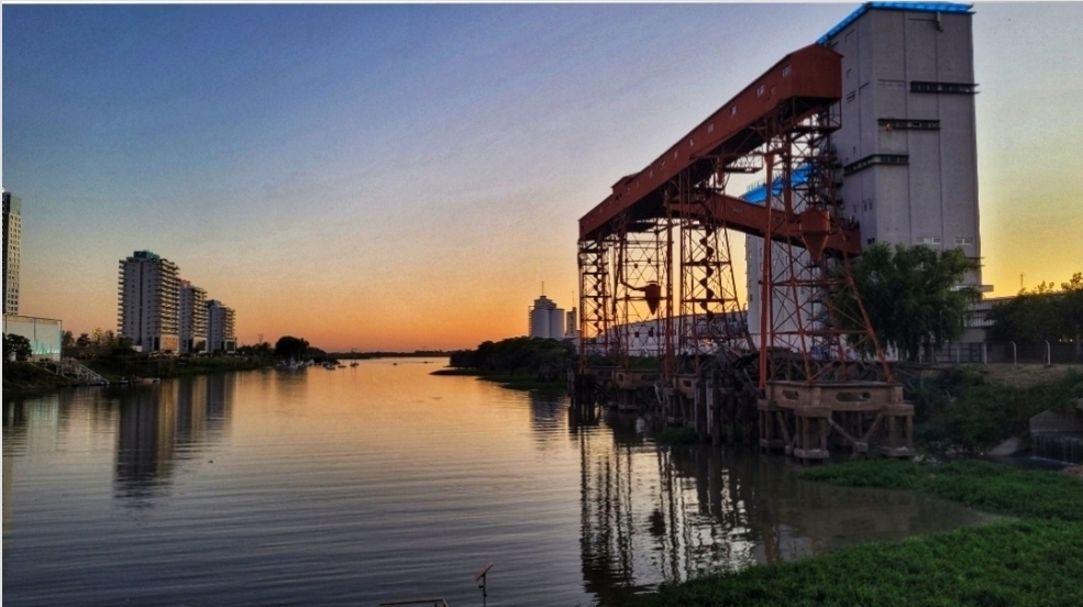 POEMA       Tímido brazo en reposo,  del caudaloso río.   Baluarte fluvial, que nos enhebra con el mundo.   Asiento recóndito, del país argentino profundo.   Tránsito y fuente, de riquezas.   Principio, sendero y fin, de peregrinos…