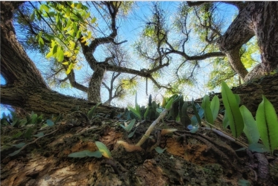 POEMA       Árboles que se recortan, en la celeste claridad.   Maderas vivientes, oníricos senderos, de las ninfas y las bellamente efímeras mariposas.   Prodigiosos entramados de los relatos de princesas.   Intrincadas escaleras al cielo, en retazos…