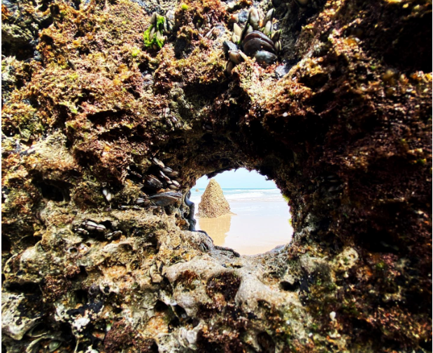 POEMA       ¿Qué hay más allá? El sol parece esconderse El cielo se sonroja  Las nubes pierden sus fronteras Y la mar se tiñe de rosado.   Desde aquí sentada frente al sol Pienso en mis devenires, en…