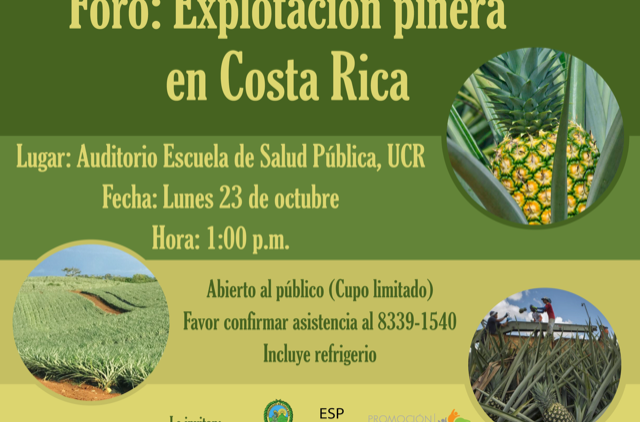 En la tarde del pasado 23 de octubre, tuvo lugar un foro en la Escuela de Salud Pública de la Universidad de Costa Rica (UCR) titulado «Foro: explotación piñera en Costa Rica«. Participaron a la actividad Mauricio Alvarez (Escuela de…