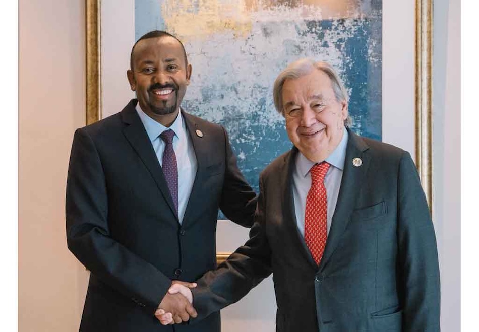 El primer ministro de Etiopía, Abiy Ahmed, y el secretario general de las Naciones Unidas, António Guterres, discutieron hoy el fortalecimiento de la cooperación multilateral y el avance de las prioridades globales compartidas. Estas últimas, incluida la acción climática, la…