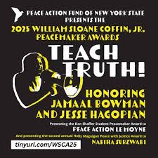 El 29 de septiembre, el Fondo de Acción por la Paz del Estado de Nueva York (PAFNYS) hará entrega de los Premios Pacifistas William Sloane Coffin Jr. 2025 al educador vitalicio y ex congresista estadounidense, Jamaal Bowman, y al educador antiracista y activista, Jesse…