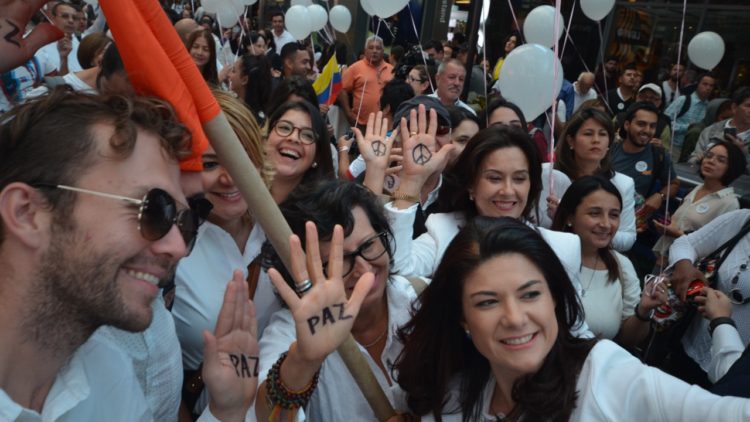 La comunidad Colombiana en favor de la Paz se reunieron en la plaza de Time Square para la celebration del fin de la guerra despues 52 anos, al mismo tiempo que se firmaron los acuerdos entre la guerrilla de las…