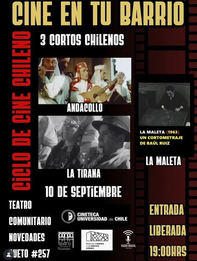 👉🏼 Este próximo miércoles 10 de septiembre, continuamos con nuestro ciclo de cine chileno y memoria, organizado por el Teatro Comunitario Novedades y Radio Brasil en colaboración con la @cinetecaudechile ▪️ 3 Cortometrajes: 📼 Andacollo, (1958), dirigido por Jorge di Lauro…
