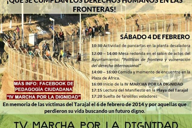ESPAÑOL: El sábado 4 de febrero una delegación de «Tanquem els CIE» asistirá a la IV Marcha por la Dignidad que se celebrará en Ceuta y que terminará en la playa del Tarajal, donde el 6 de febrero de 2014,…