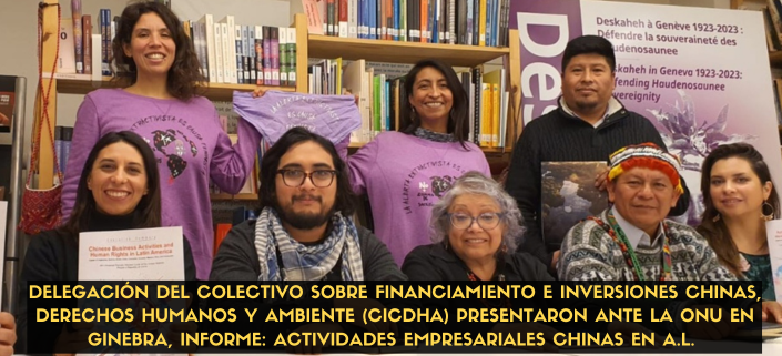 Delegación de 10 representantes del Colectivo sobre Financiamiento e Inversiones Chinas, Derechos Humanos y Ambiente (CICDHA), junto a otras 35 organizaciones latinoamericanas, presentaron en la sede de la ONU en Ginebra, el informe: Actividades empresariales chinas y derechos humanos en…