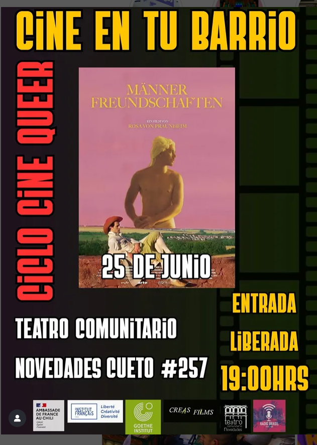 📆 Este miércoles 25 de junio, a las 19:00 horas, proyectaremos el documental «Amistades masculinas» de Rosa von Praunheim. @rosa_von_praunheim 📍 Dirección: Calle Cueto 257, Santiago. @teatrocomunitario.novedades 🎬 Sinopsis: Un documental sobre las relaciones homoeróticas durante el Clasicismo de Weimar entre figuras…