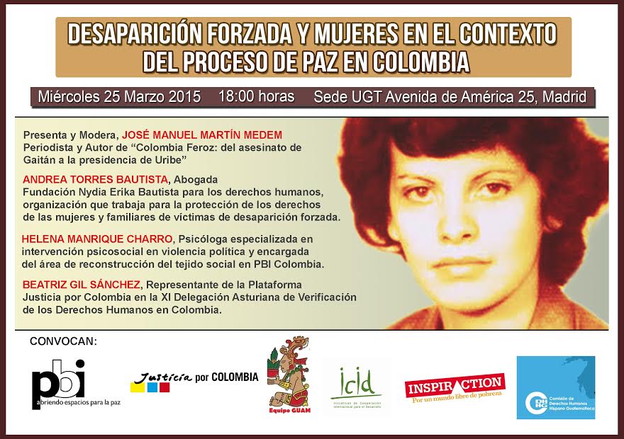 El miércoles 25 de marzo se va a celebrar en Madrid una charla-coloquio sobre el proceso de la desaparición forzada y mujeres en el contexto del proceso de paz en Colombia. Tendrá lugar a las 18:00 en la Sede de…