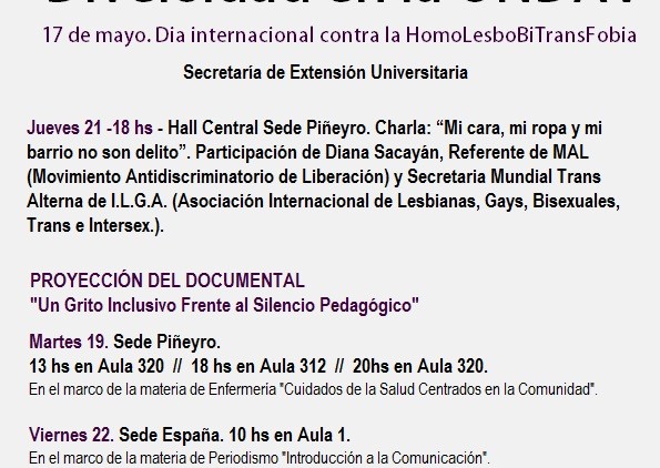 La Universidad Nacional de Avellaneda conmemora el 17 de mayo, Día Internacional contra la discriminación por HomoLesboBiTransFobia, con diferentes actividades enmarcadas en la Semana de la Diversidad en la UNDAV, desde el 19 al 22 de mayo. A través de…