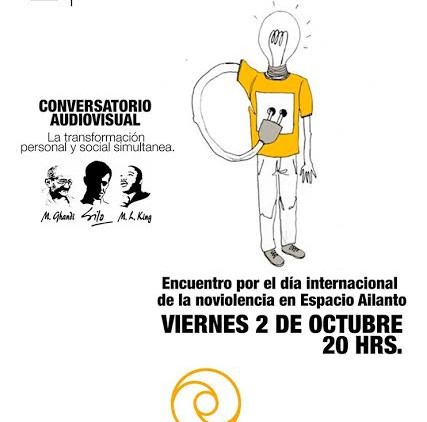 Este viernes 2 de octubre, con ocasión del Día Internacional de la No Violencia, tendrá lugar un Conversatorio Audivisual en el Centro Cultural Ailanto, ubicado en el Barrio Yungay, calle Huérfanos 3116 esquina de Herrera, en Santiago de Chile, a…