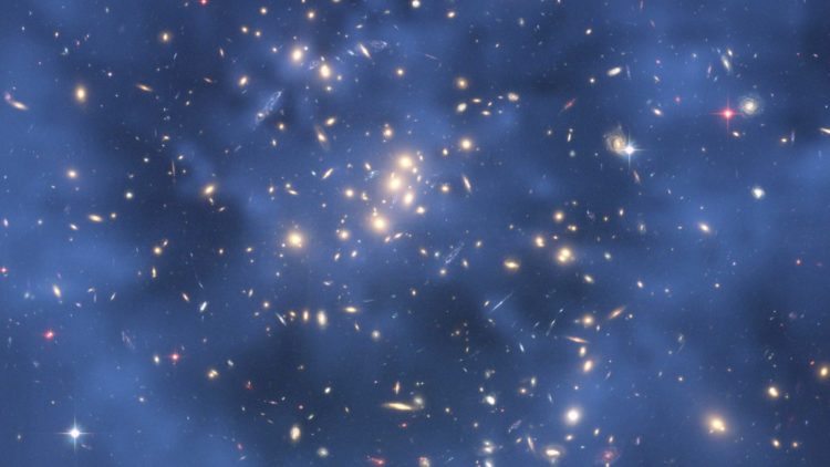 Imagen compuesta del cúmulo de galaxias CL0024+17 tomada por el telescopio espacial Hubble que muestra la creación de un efecto de lente gravitacional. Se supone que este efecto se debe, en gran parte, a la interacción gravitatoria con la materia…