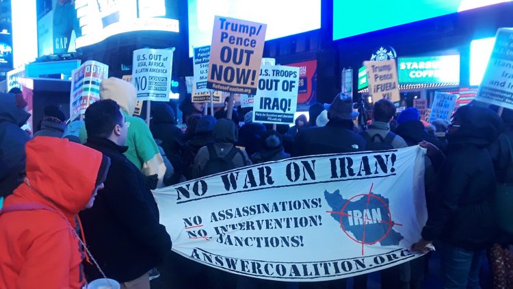 Por Katherine Rojas Enero 8, 2019 en  Nueva York, en Times  Square, uno de los lugares más concurridos por propios y visitantes, fue el lugar escogido para  rechazar los vientos de guerra en Irán. Es una guerra completamente innecesaria, nosotros…