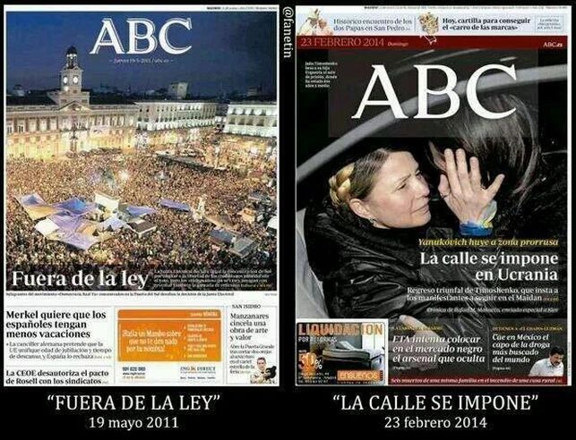 Lo que en unos casos se llama injerencia, en otros se presenta como reacción defensiva; lo que a veces es denominado crimen de guerra, en otros aparece como ataque selectivo; lo que en España son protestas fuera de la ley,…