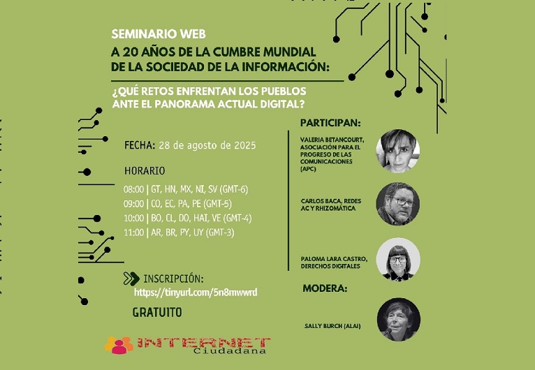 Con el objetivo de analizar los aspectos más significativos y las implicancias del evento de revisión WSIS+20 realizado en julio pasado en Ginebra, la red latinoamericana y caribeña Internet Ciudadana organizó un webinario bajo el título “A 20 años de…
