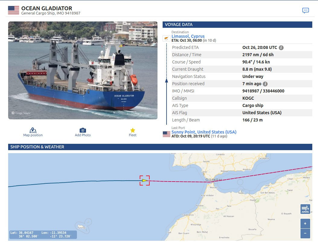 El Estado español debe denegar tránsito al buque Ocean Gladiator a su paso por aguas españolas en el Estrecho de Gibraltar
