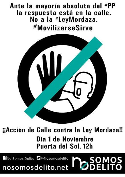 El sábado 1 de noviembre, a las 12 del mediodía, están previstas concentraciones en todo el país para protestar contra la llamada popularmente Ley Mordaza. Desde el colectivo No somos delito,  se propone llenar las plazas con manifestantes portando todos…