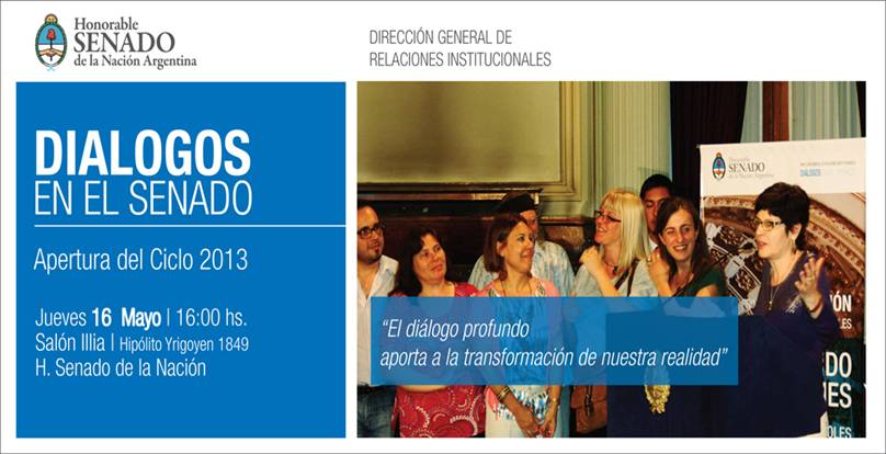 Bajo el lema “El diálogo profundo aporta a la transformación de nuestra realidad” el próximo jueves 16 de mayo tendrá lugar el lanzamiento del ciclo Diálogos en el Senado en su edición 2013. El encuentro, impulsado por la Dirección General…