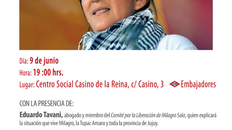 Este jueves, a las 19 horas, en el Casino de la Reina de Madrid, tendrá lugar un nuevo acto por la liberación de Milagro Sala. Se contará -entre otros- con la presencia de una representación de Amnistía Internacional y de…
