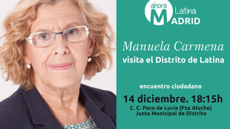 El lunes 14 de Diciembre, la alcaldesa de Madrid, Manuela Carmena, estará en el Distrito Latina. Como es habitual en esta nueva forma de hacer política cercana a la gente, Manuela Carmena recorrerá -en esta ocasión- el Distrito de La…